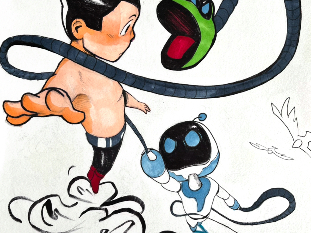 Show all Desenhos Renders 3D Animações 2D Animações 3D Stylophone(short film) background Astro Boy vs Astro bot Metamorphosis 2